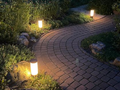 Path and driveway lights, patio and deck lights, bollards, residential and commercial lighting, area lighting, shadow pattern lighting, artistic landscape sculpture, color changing lighting